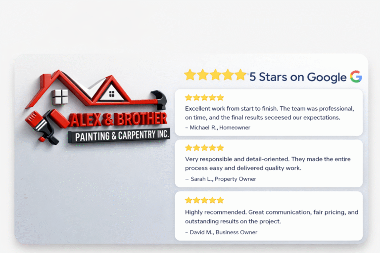 We are proud to deliver quality painting and carpentry services with reliable results, clear communication, and attention to detail. See why our clients continue to recommend our team for residential and commercial projects.